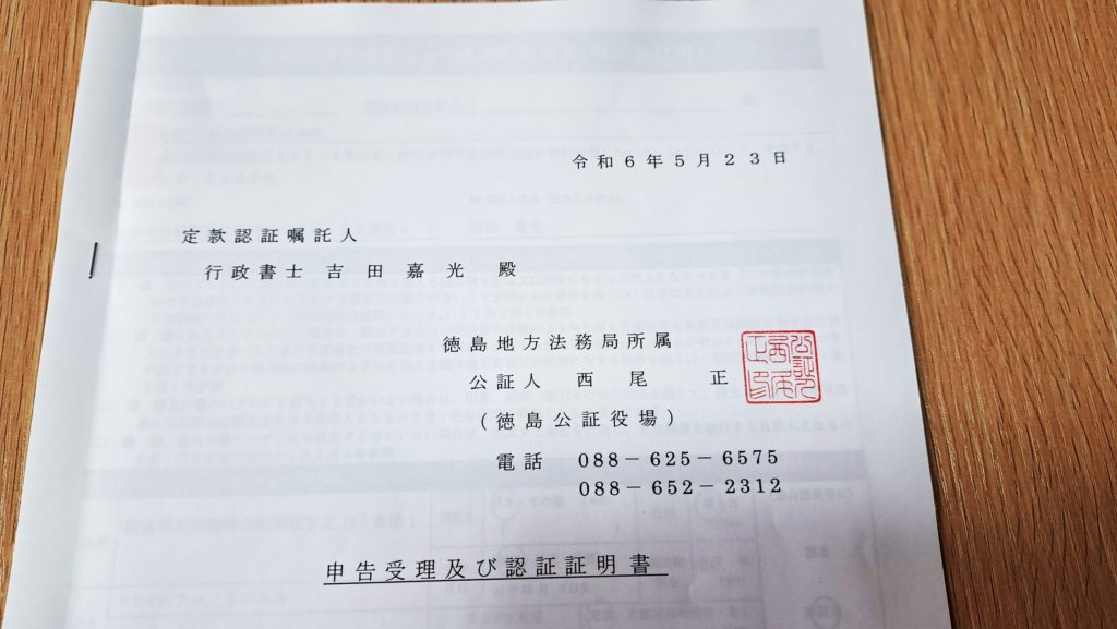 ご依頼をいただいていた株式会社設立ための電子定款認証を徳島公証役場にて行い、